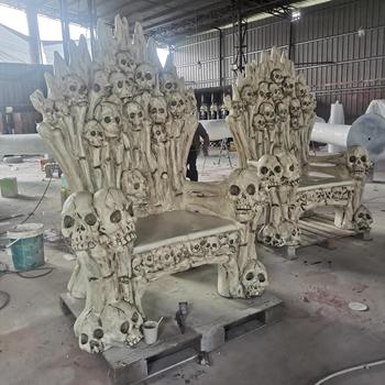 Cuộc Sống Kích Thước Halloween Skull Throne Ghế Sợi Thủy Tinh Điêu Khắc Skeleton Head Ghế Prop Ngoài Trời Kinh Dị Chủ Đề Tổ Chức Sự Kiện Trang Trí