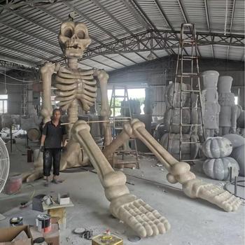 Khổng Lồ Halloween Skeleton ngồi sợi thủy tinh điêu khắc chống đỡ bức tượng quá khổ lớn ngoài trời kinh dị chủ đề trang trí
